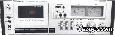 The main features of the Realistic SCT-30 cassette deck are: 3 heads and no off-tape monitoring to save production cost, tape type selection and capable of handling normal, chrome and ferro-chrome tapes.